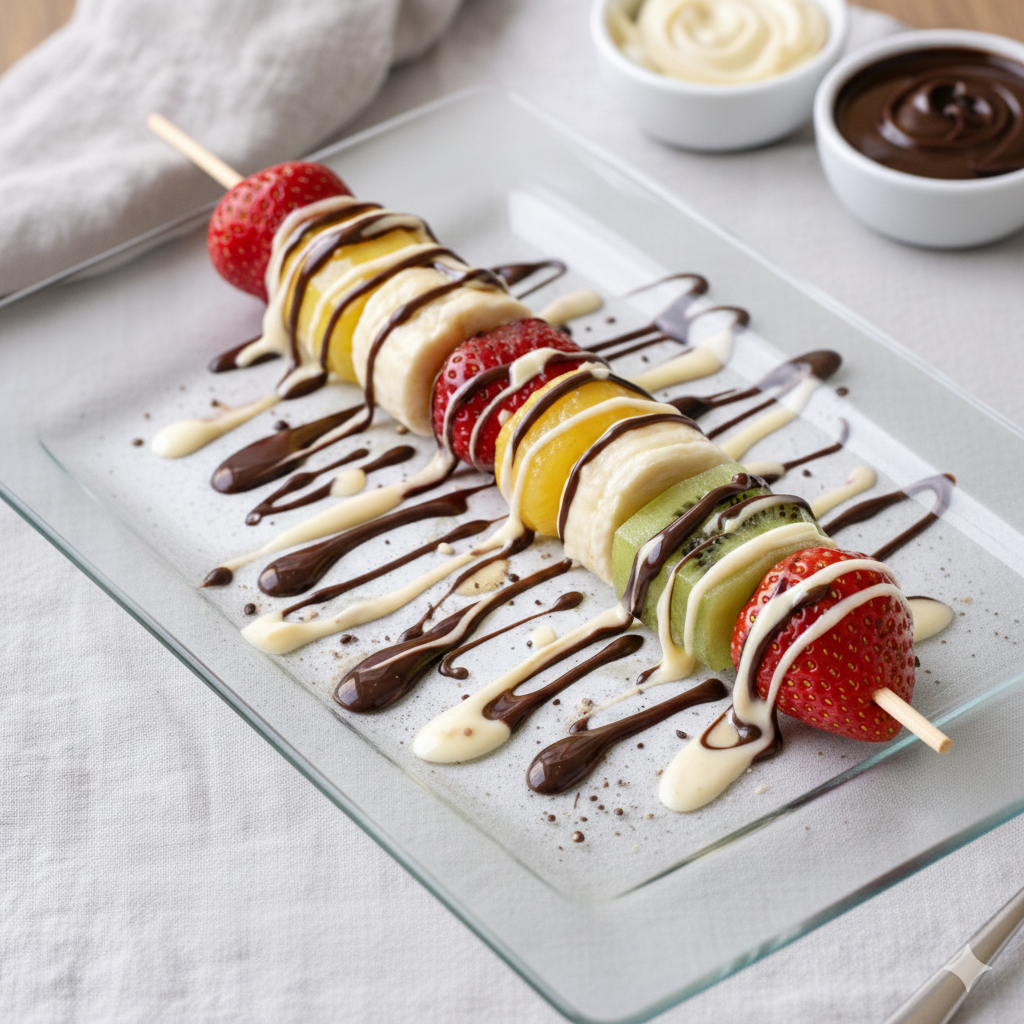 • Brocheta mixta de fruta dos chocolates.